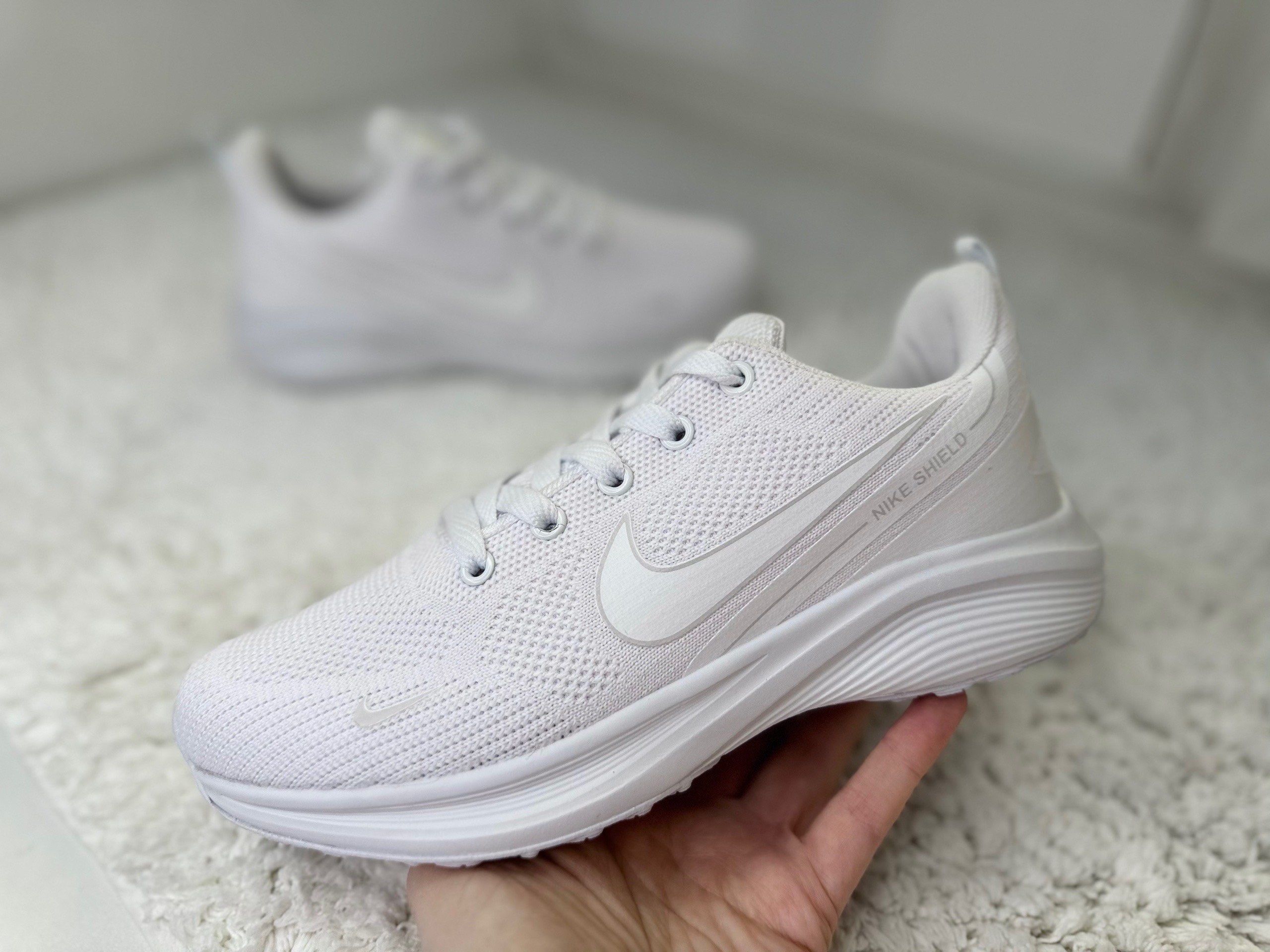 Подошва из пены Nike Shield белые , активно поглощает ударную нагрузку, обеспечивает уверенное сцепление с поверхностью.