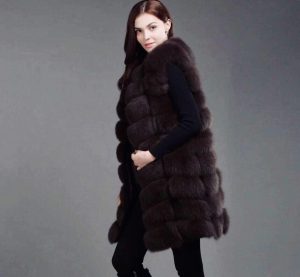 Коричневая жилетка из песца длинной 90 см. Есть весь размерный ряд.