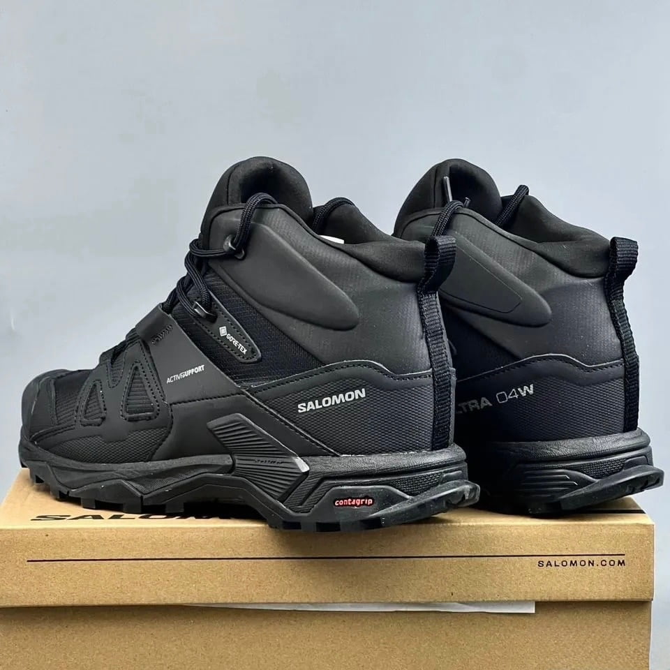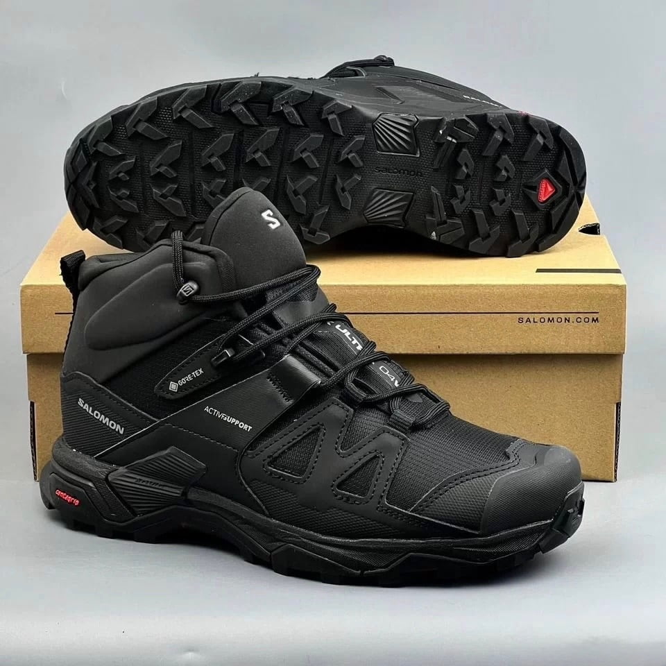 Высокие мужские зимние кроссовки Salomon Ultra 4 GTX, черные с мехом:
